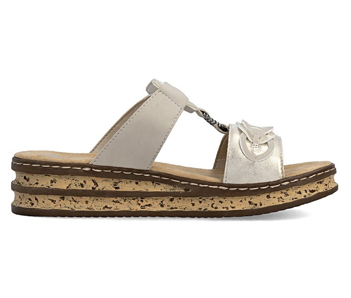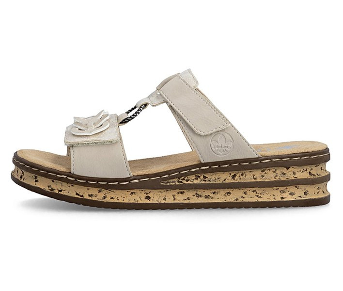 Bézs színű Rieker 62936-60 női papucs. Felsőrészének az anyaga: Ekológikus bőr felső