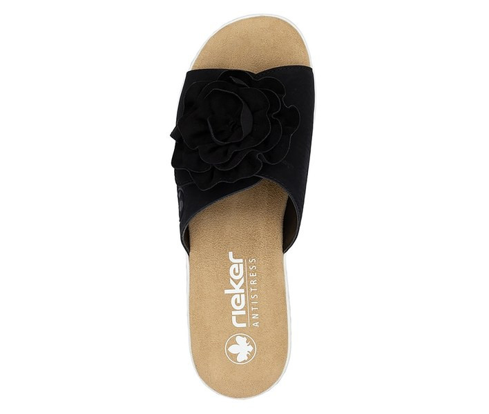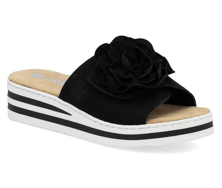 Fekete színű Rieker V0252-00 női papucs. Felsőrészének az anyaga: