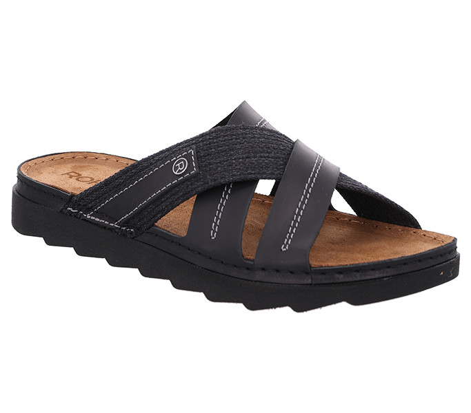Fekete színű Rohde 5971-90 férfi papucs. Felsőrészének az anyaga: Bőr