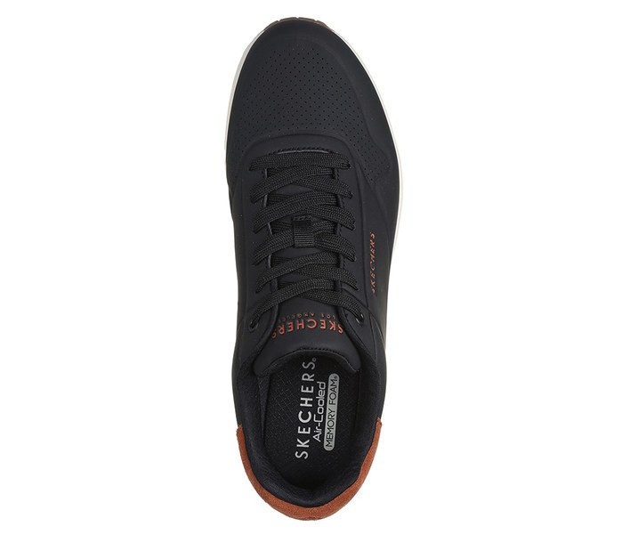 Fekete színű Skechers 183004-BLK férfi cipő. Felsőrészének az anyaga: Bőr-szintetikus felsőrész