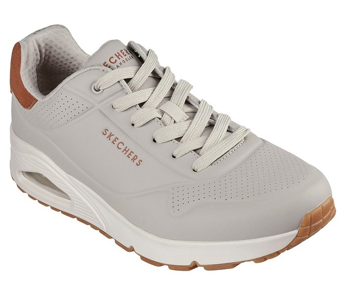 Bézs színű Skechers 183004-NAT férfi cipő. Felsőrészének az anyaga: Bőr-szintetikus felsőrész