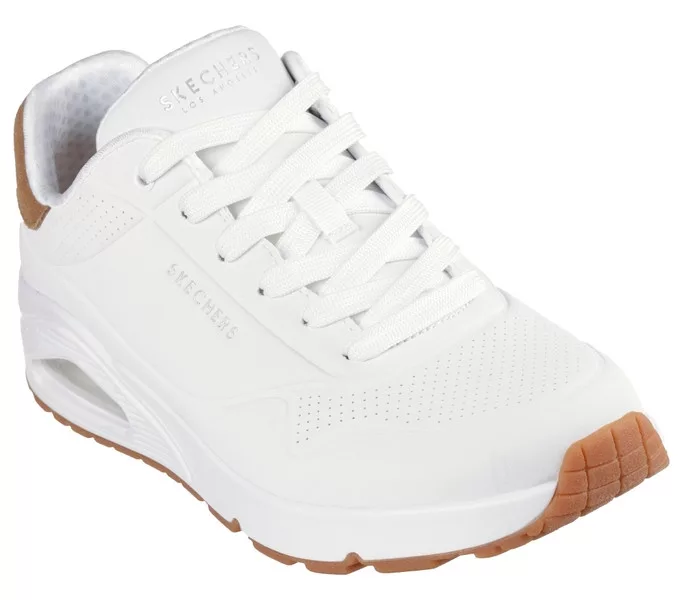 Fehér színű Skechers 183004-WHT férfi cipő. Felsőrészének az anyaga: Bőr-szintetikus felsőrész