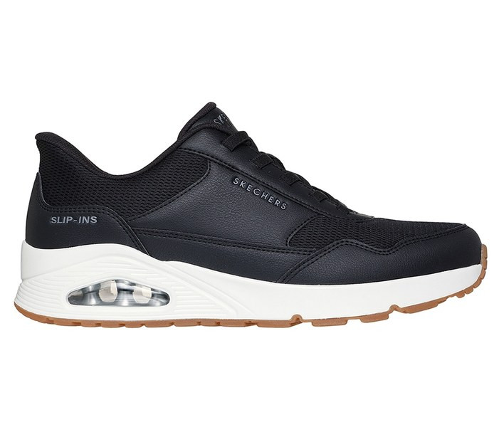 Fekete színű Skechers 183022-BLK férfi cipő. Felsőrészének az anyaga: Textil-szintetikus felsőrész
