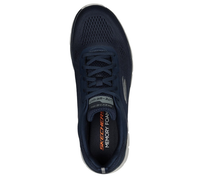 Kék színű Skechers 232698-NVY férfi cipő. Felsőrészének az anyaga: Textil-szintetikus felsőrész
