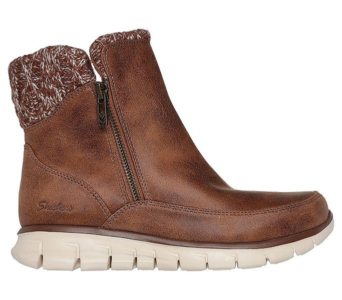 Barna színű Skechers 167941-BRN női bokacsizma. Felsőrészének az anyaga: Szintetikus felsőrész