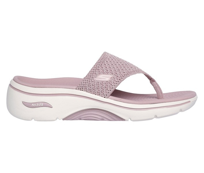 Rózsaszín színű Skechers 140861-MVE női papucs. Felsőrészének az anyaga: Textil felsőrész