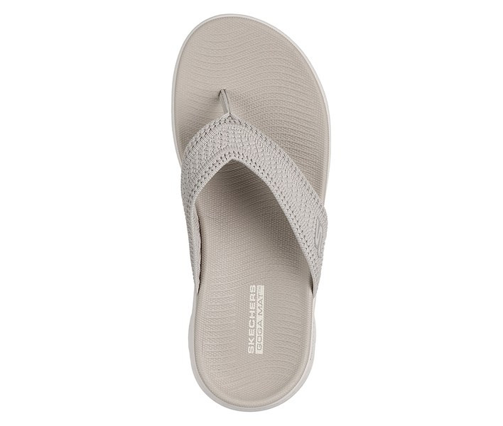 Bézs színű Skechers 141459-TPE női papucs. Felsőrészének az anyaga: