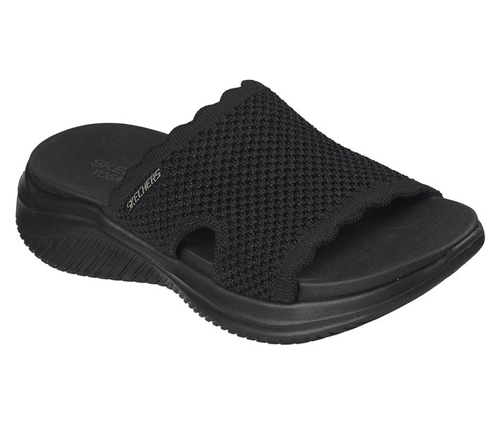 Fekete színű Skechers 164055-BBK női papucs. Felsőrészének az anyaga: