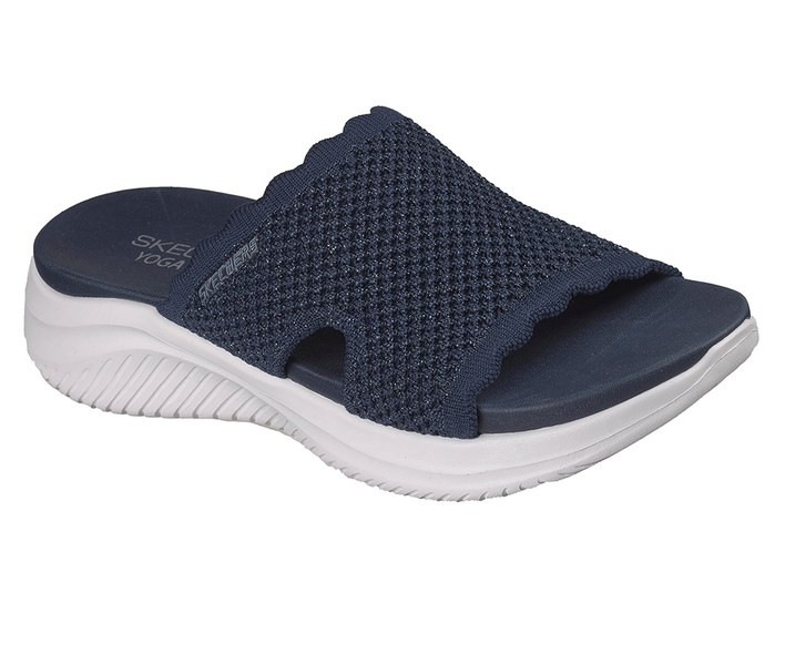 Kék színű Skechers 164055-NVY női papucs. Felsőrészének az anyaga: Szintetikus felsőrész