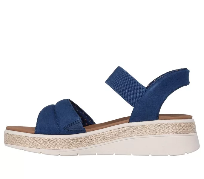 Kék színű Skechers 114413-NVY női szandál. Felsőrészének az anyaga: Textil felsőrész