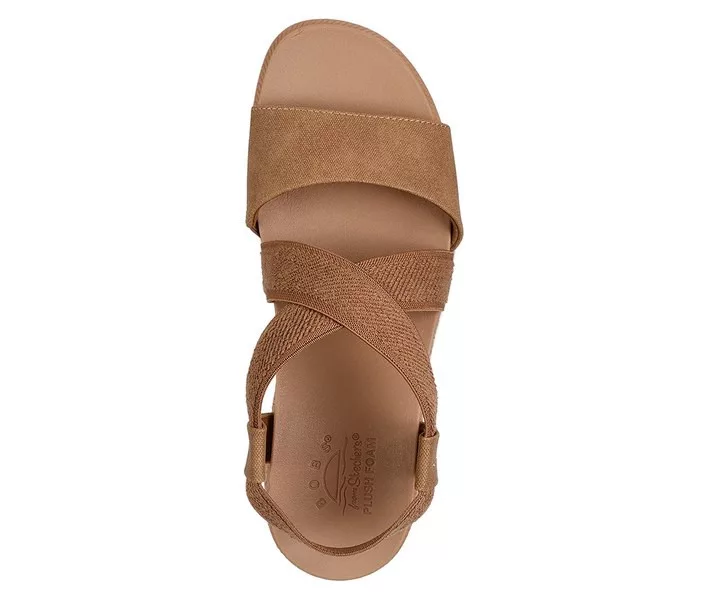 Barna színű Skechers 114705-CSNT női szandál. Felsőrészének az anyaga: Textil-szintetikus felsőrész