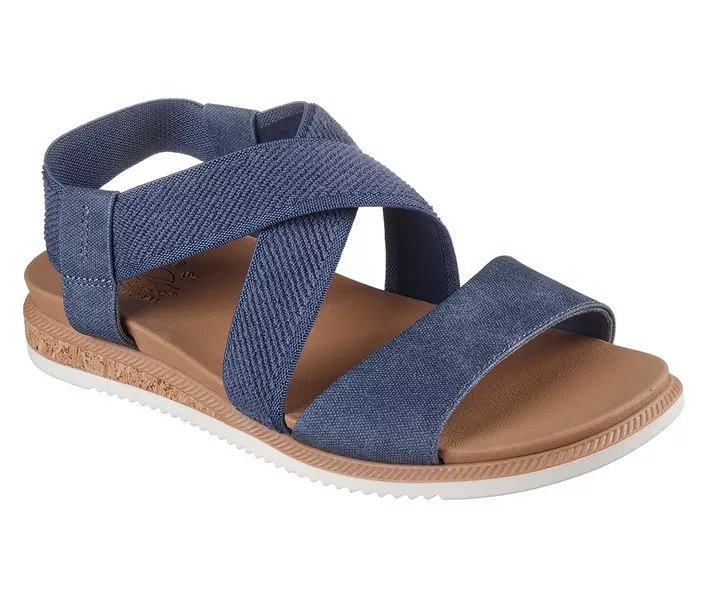 Kék színű Skechers 114705-SLT női szandál. Felsőrészének az anyaga: Textil-szintetikus felsőrész