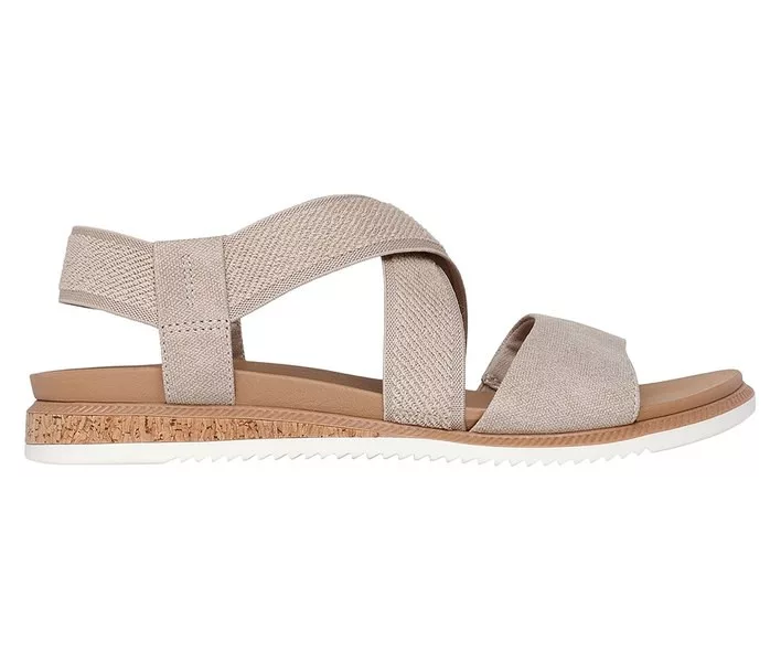 Bézs színű Skechers 114705-TPE női szandál. Felsőrészének az anyaga: Textil-szintetikus felsőrész
