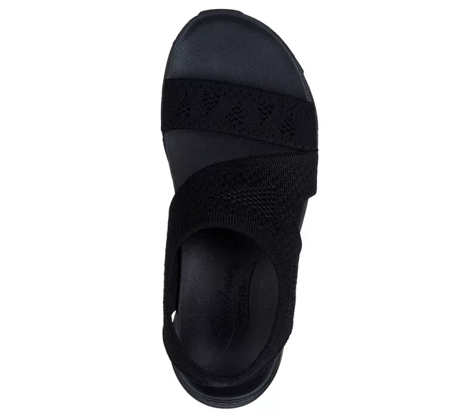 Fekete színű Skechers 119458-BBK női szandál. Felsőrészének az anyaga: Textil felsőrész