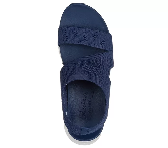Kék színű Skechers 119458-NVY női szandál. Felsőrészének az anyaga: Textil felsőrész