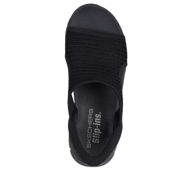 Fekete színű Skechers 119519-BBK női szandál. Felsőrészének az anyaga: Textil felsőrész