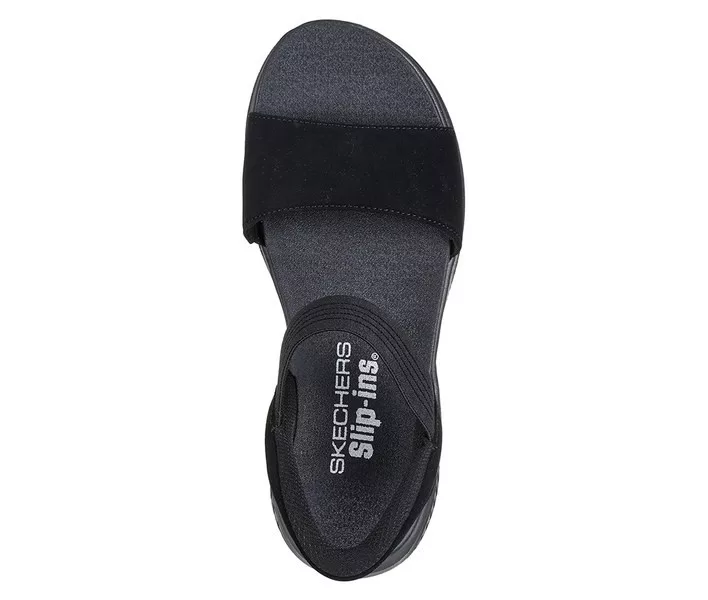 Fekete színű Skechers 119804-BBK női szandál. Felsőrészének az anyaga: Textil-szintetikus felsőrész