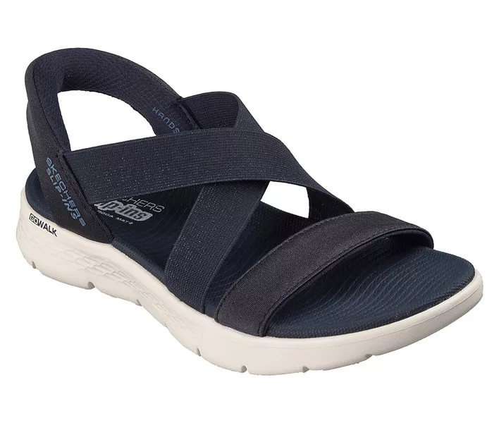 Kék színű Skechers 141489-NVY női szandál. Felsőrészének az anyaga: Textil felsőrész