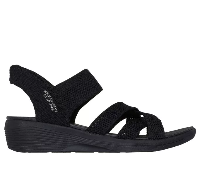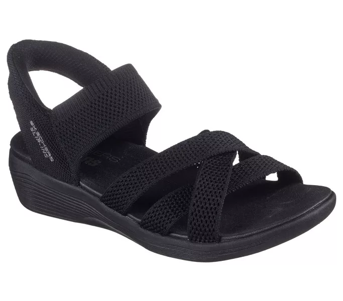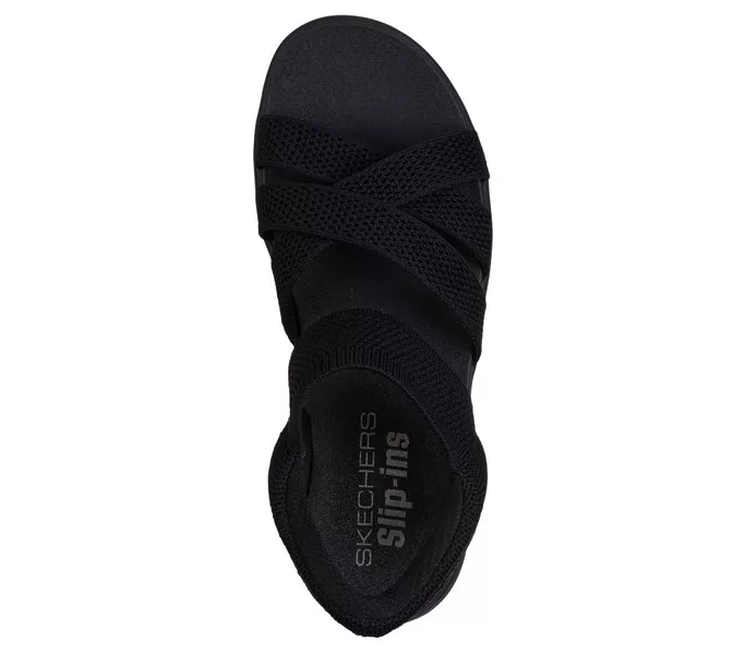 Fekete színű Skechers 163524-BBK női szandál. Felsőrészének az anyaga: Textil felsőrész