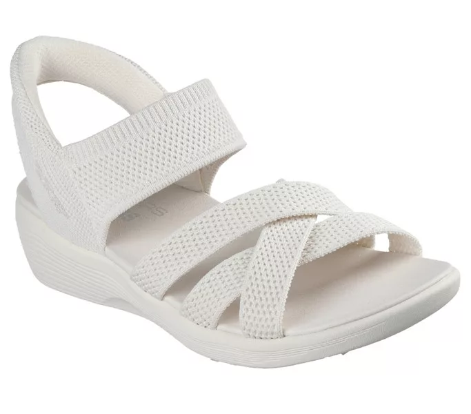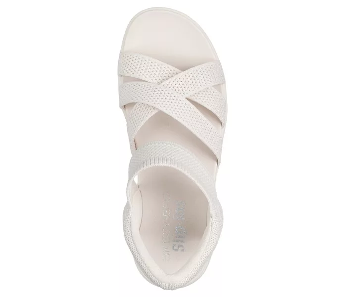 Bézs színű Skechers 163524-OFWT női szandál. Felsőrészének az anyaga: Textil felsőrész
