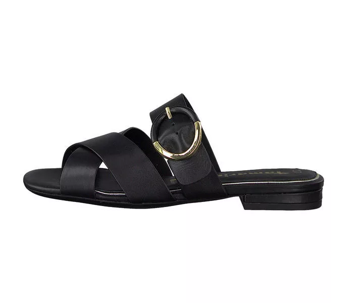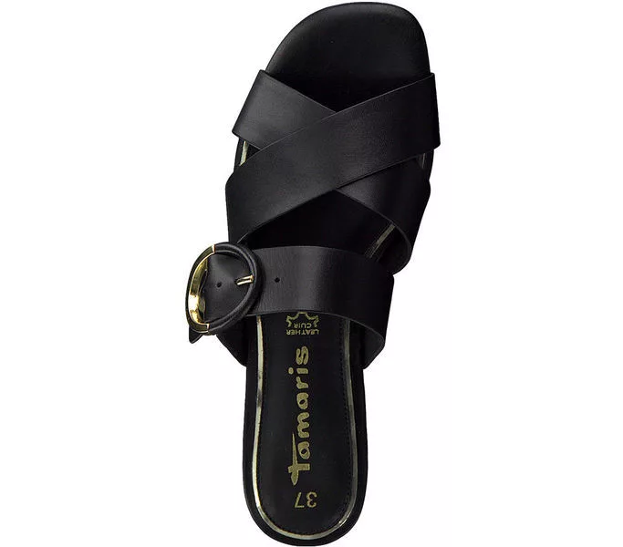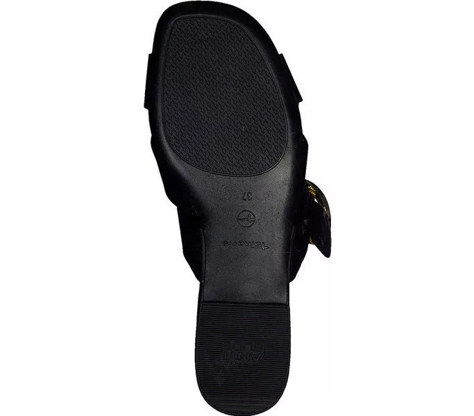 Fekete színű Tamaris 1-27129-34 001 női papucs. Felsőrészének az anyaga: bőr felső
