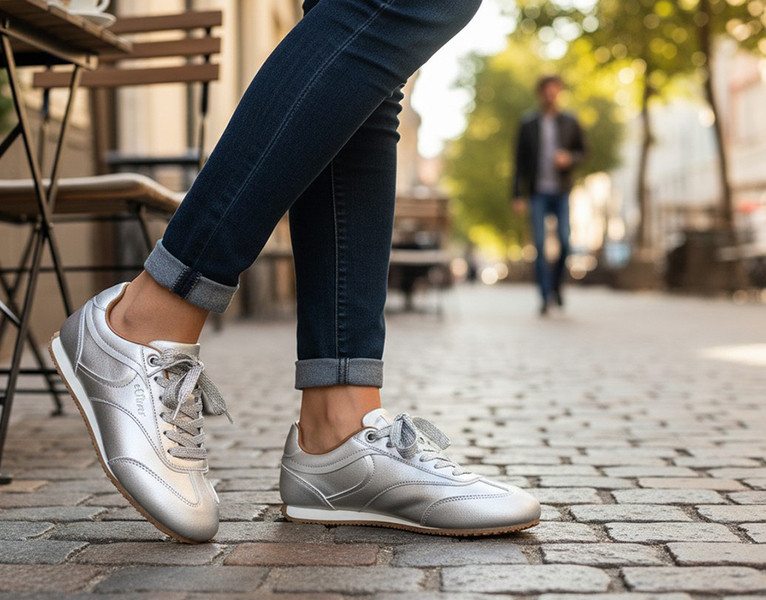 Ezüst színű s.Oliver 2177809-9415 női cipő. Felsőrészének az anyaga: szintetikus