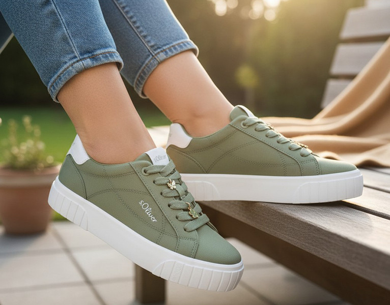 Zöld színű s.Oliver 2177844-7044 női cipő. Felsőrészének az anyaga: textil