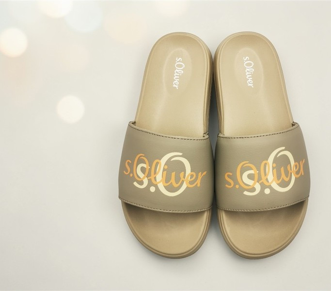 Bézs színű s.Oliver 2177762-7800 női papucs. Felsőrészének az anyaga: szintetikus